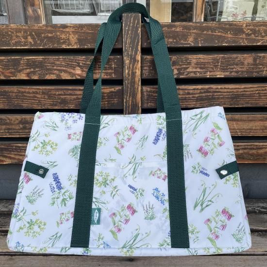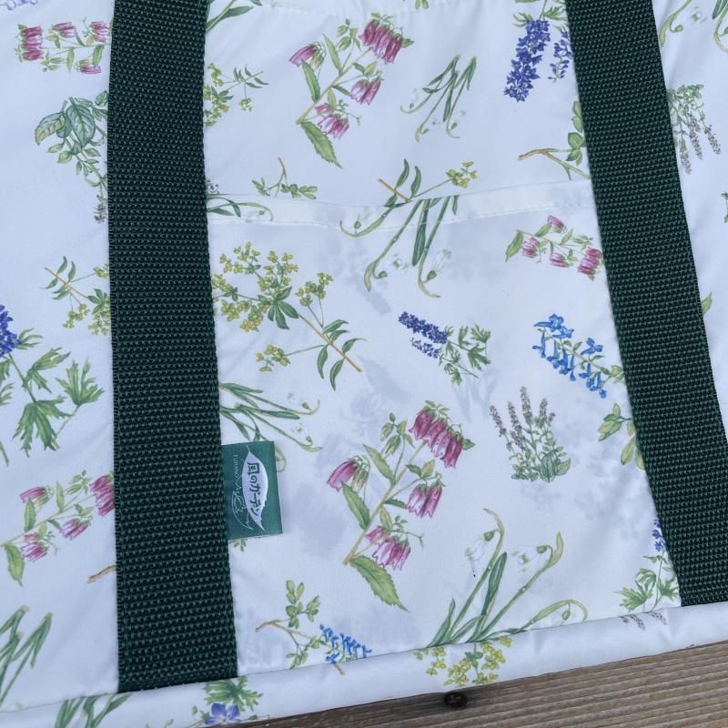 「風のガーデン」のお花たちが描かれた、レジかごバッグです。