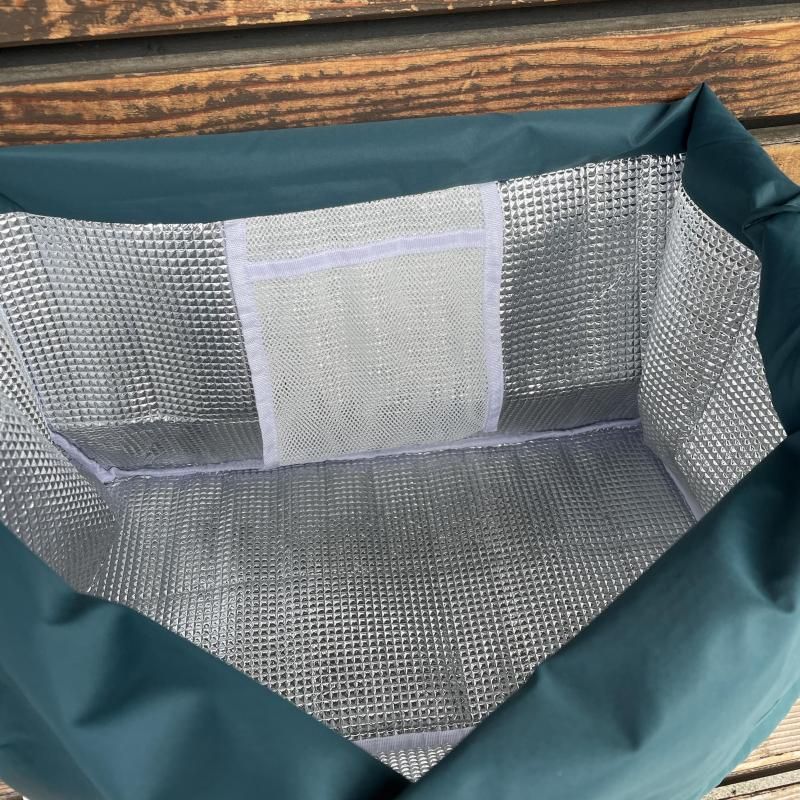 中には保冷剤を入れられるメッシュのポケット付き。